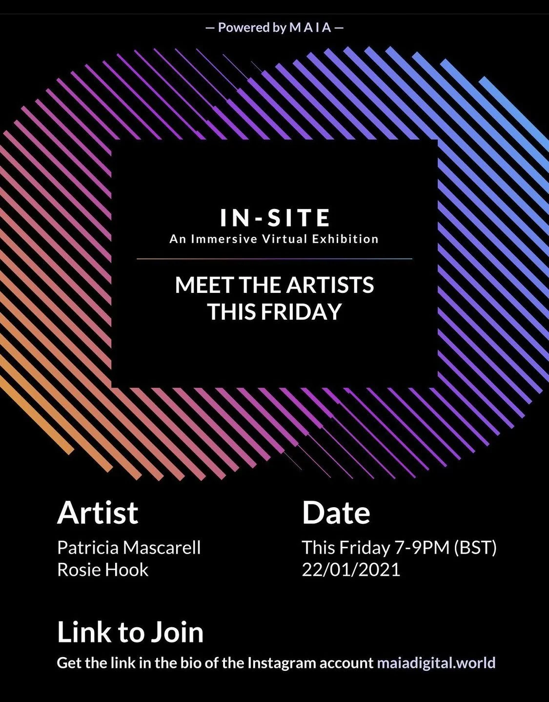 In-site is Maia’s first exhibition created in collaboration with artists Patricia Mascarell and Rosie Hook. We provide an experimental space for artists and musicians to exhibit and promote their work. These spaces are fully customisable to cater to their specific themes. It allows users to interact with and navigate through the artist’s works, and also gives artists the chance to communicate with potential buyers and viewers.