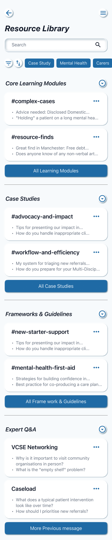 The Outcome I designed Peer Hub, a secure, NHS compliant digital ecosystem that centralises peer support. By streamlining knowledge sharing, the platform enables workers to identify a "safe next step" for complex cases in a matter of minutes, directly addressing the root causes of practitioner burnout.