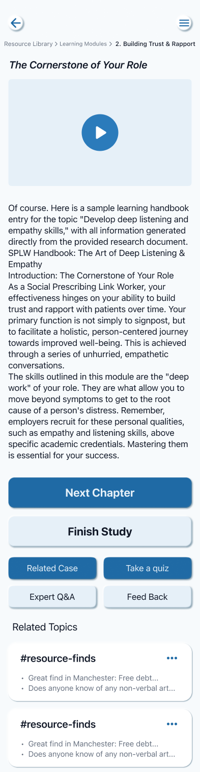 The Challenge Social Prescribing Link Workers (SPLWs) are the unsung heroes of the NHS, connecting patients with non clinical support like housing support or mental health groups. However, the role faces a crisis of sustainability: high emotional labour, professional isolation, and safety risks.